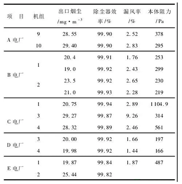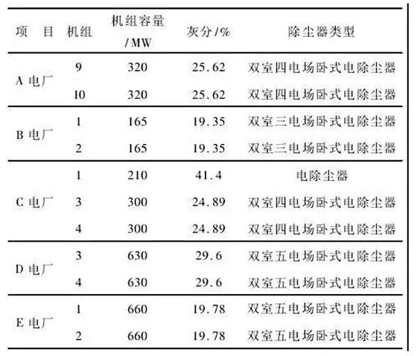 表1燃煤電廠除塵器改造前設備信息