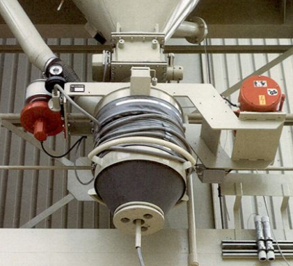 主要由“卸料閘門”、“輸送斜槽”、“彎頭”、“下料接管”、“散裝機”、“除塵器”、“斜槽風(fēng)機”等組成。